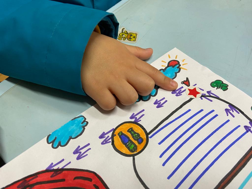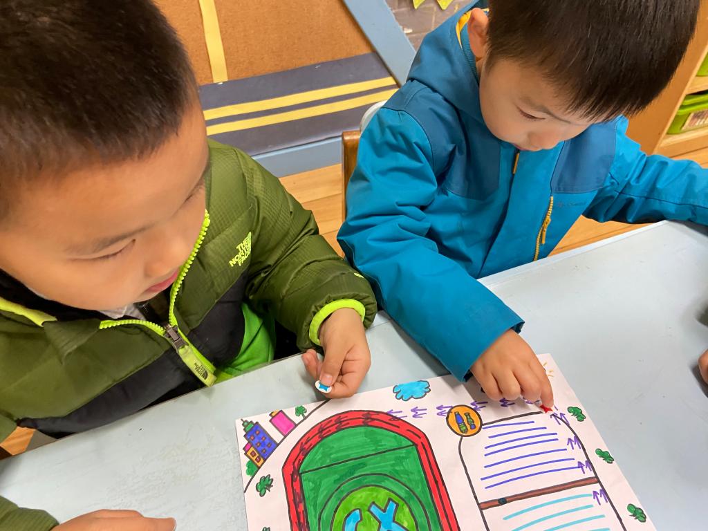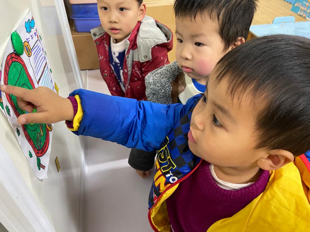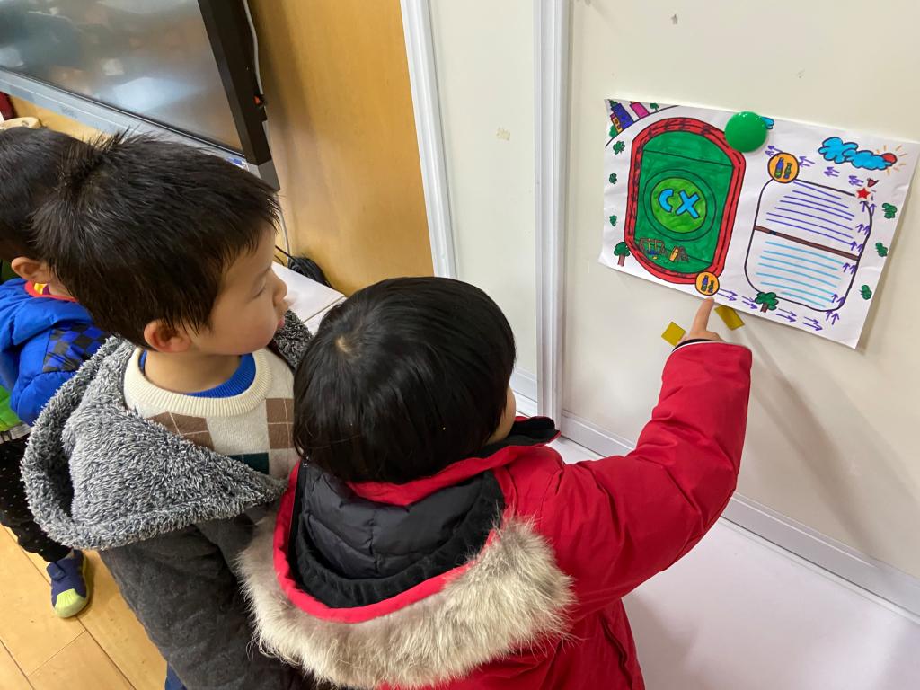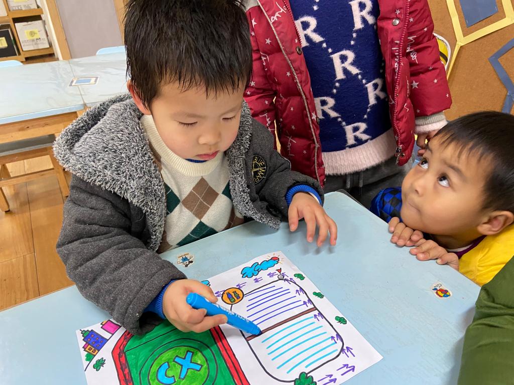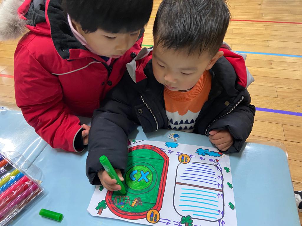我们还一起参与了路线图的设计呢,绕着幼儿园跑一圈~