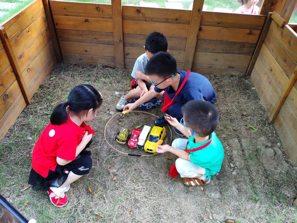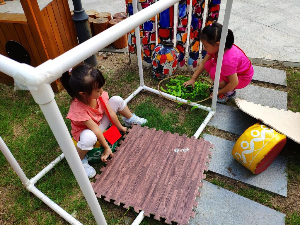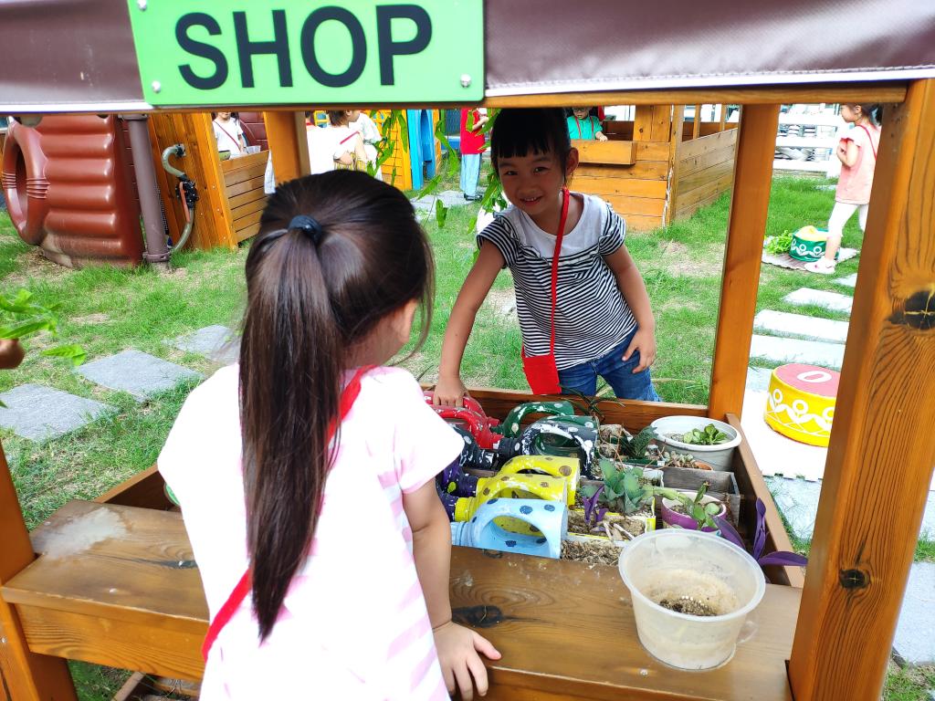 今天我们开展了户外游戏——百境台,本次的游戏内容是跳蚤市场,在游戏里小朋友纷纷开动脑筋用各种材料搭建自己的摊位和商品。小客人们都背上了钱包带好了钱选购自己想要的商品,在游戏里每个小朋友都开心极了!