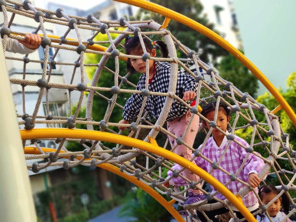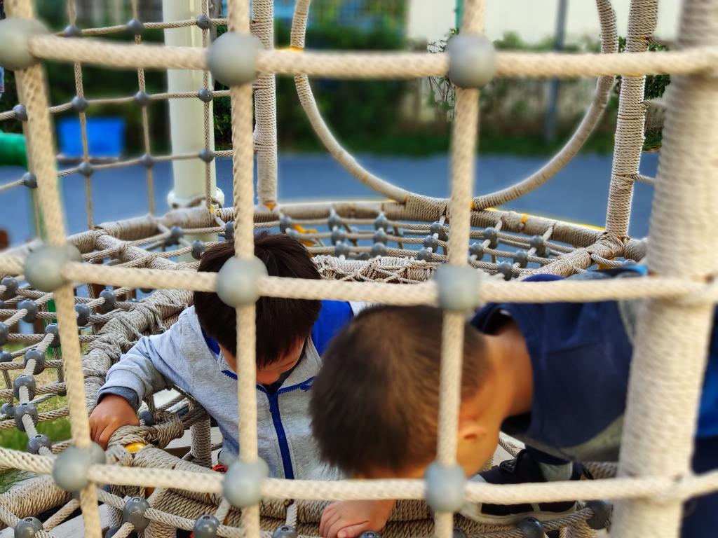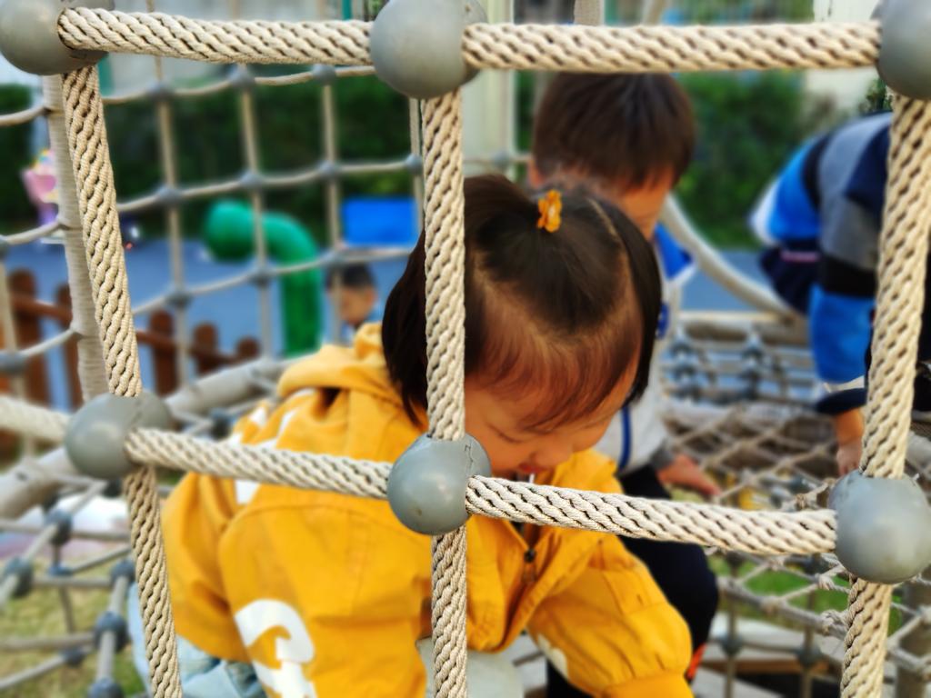 本周我班小朋友轮到了攀爬场地游戏,面对这有趣的洞洞、刺激的大网,小朋友们一个个都兴奋极了!分散游戏后,个个迫不及待的爬上了网架,个个都是攀爬小能手!