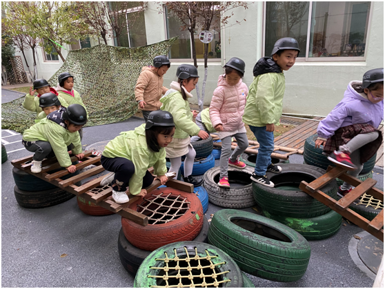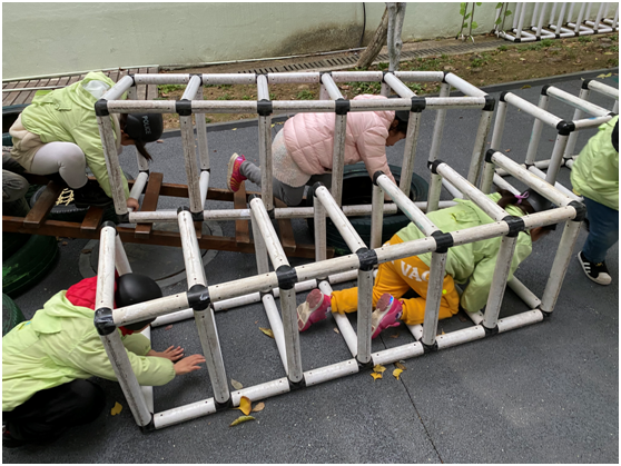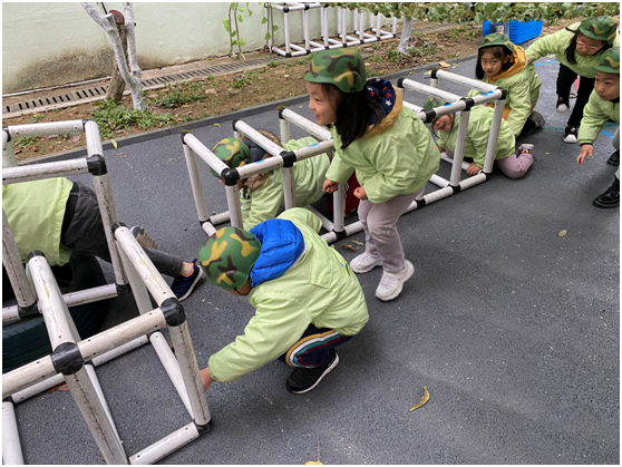 今天小朋友一起打野战,钻地洞,玩得不亦乐乎!
