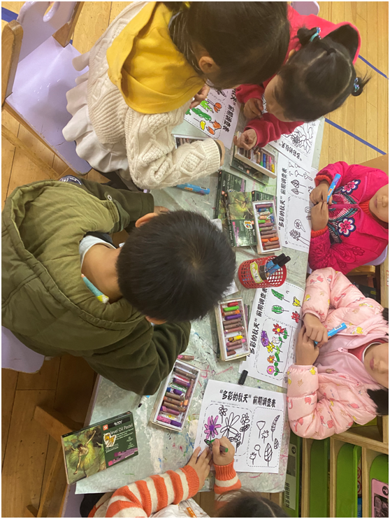 今天我们一起画了多彩的秋天,我们心目中的秋天是什么样子的?有花有树还有很多的水果,这些事物的颜色构成了多彩的秋天!